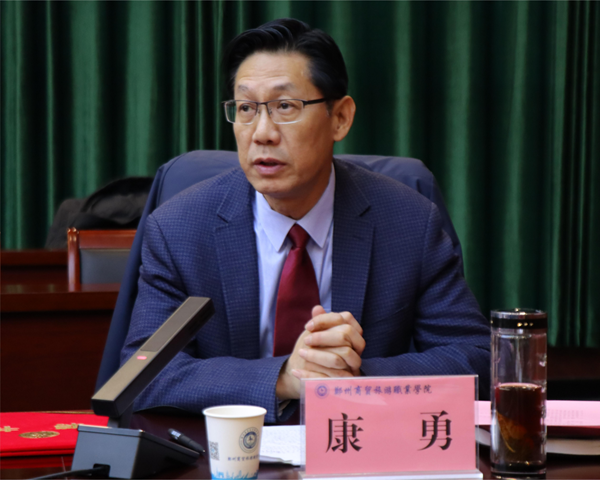 会上,康勇教授进行了表态发言,他首先感谢学校董事会的信任,同时深感责任重大、使命光荣,有信心履行好本职工作,表示在下一步工作中,一是虚心学习,尽快进入角色;二是担当作为,不辱初心使命;三是殚精竭虑,共谋学校发展大业。