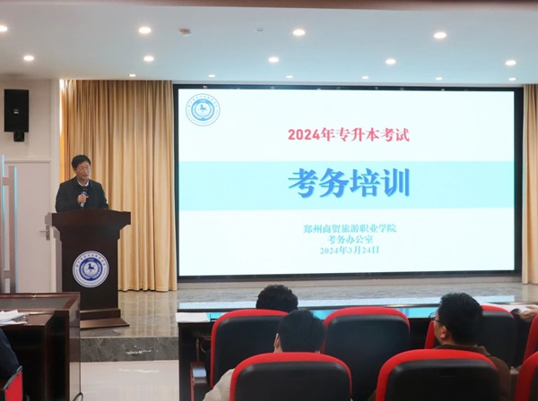 为切实做好学校2024年专升本考试工作,3月24日下午,我校在报告厅一召开专升本考试考务培训会,校长郭国侠,副校长王素湘、冯鑫永,教务处及相关处室负责人和所有涉考工作人员参加培训,会议由教务处处长黄智科主持。