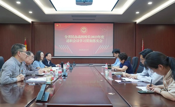 4月15日下午,我校在中原校区图书楼四楼会议室召开全省民办高校校长2023年度述职会议精神学习贯彻落实会。董事长席青慧、党委书记张睿、校长郭国侠、党委副书记郭林山、副校长冯鑫永、副校长康勇出席会议。党委办公室、校长办公室负责人列席会议。