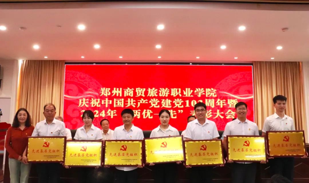 校党委副书记郭林山宣读《中共郑州商贸旅游职业学院委员会关于表彰优秀共产党员、优秀党务工作者和先进基层党组织的决定》。校领导依次为学校优秀共产党员、优秀党务工作者和先进基层党组织代表颁奖。