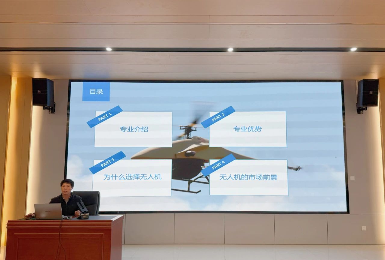 讲座中,技术专家张宝宁以“无人机应用技术的现状与未来发展趋势”为主题,结合实际案例,详细介绍了无人机技术在农业、测绘、电力巡检、影视拍摄、应急救援等诸多领域的应用和广阔的市场前景,以及无人机技术未来的发展趋势,让同学们深刻认识到无人机作为一种新兴的技术手段对国家经济发展的重要性,也为各个行业带来巨大的变革和发展机遇。