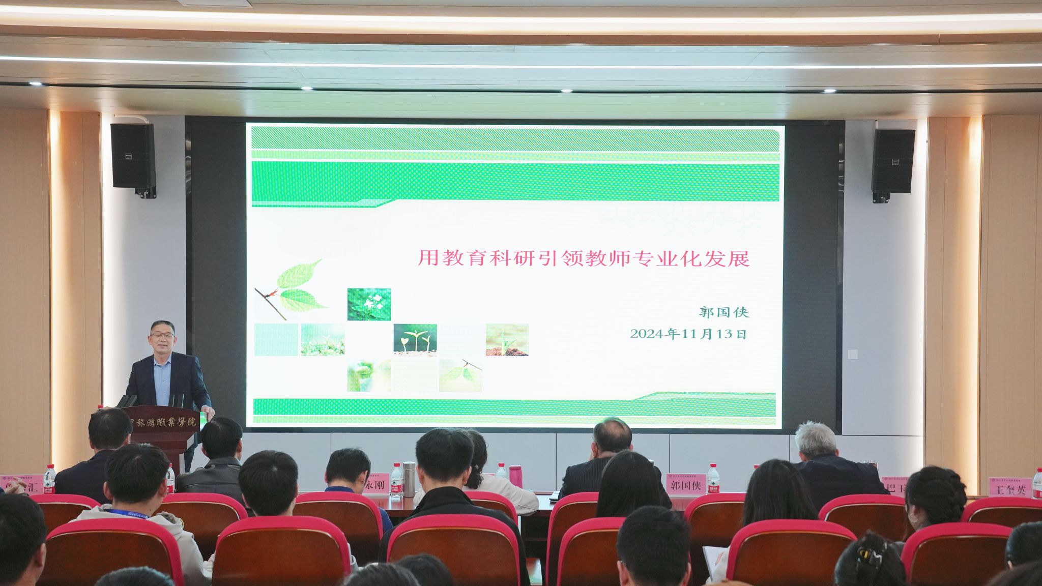 郭校长从六个方面进行讲解:一是教育科研是什么,二是为何要做教育科研,三是如何做好课题选题,四是如何填写课题立项申报书,五是怎么开展课题研究,六是课题研究的常见问题有哪些。郭校长结合实际教学成果深入解读,旨在通过分享课题研究的方法和范式,使我校教师充分了解教育科研的基本流程,深刻认识到教育科研对教师专业发展的重要性与必要性。