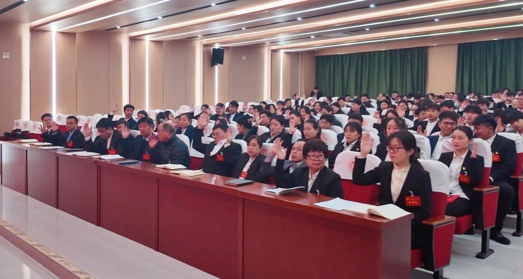 最后,郑州商贸旅游职业学院第一届教职工代表大会暨工会会员代表大会第二次会议在雄壮的《国际歌》中圆满完成了各项议程,胜利闭幕。