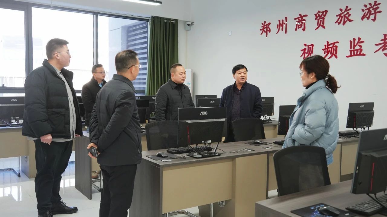 1月17日上午,新密市教育局副局长刘俊峰、考试中心主任陈惠娟、高招办主任张辉一行莅临我校调研指导国家教育考试标准化考场建设工作。副校长冯鑫永,副督学兼教务处处长巴玉强及相关部门负责人陪同调研。