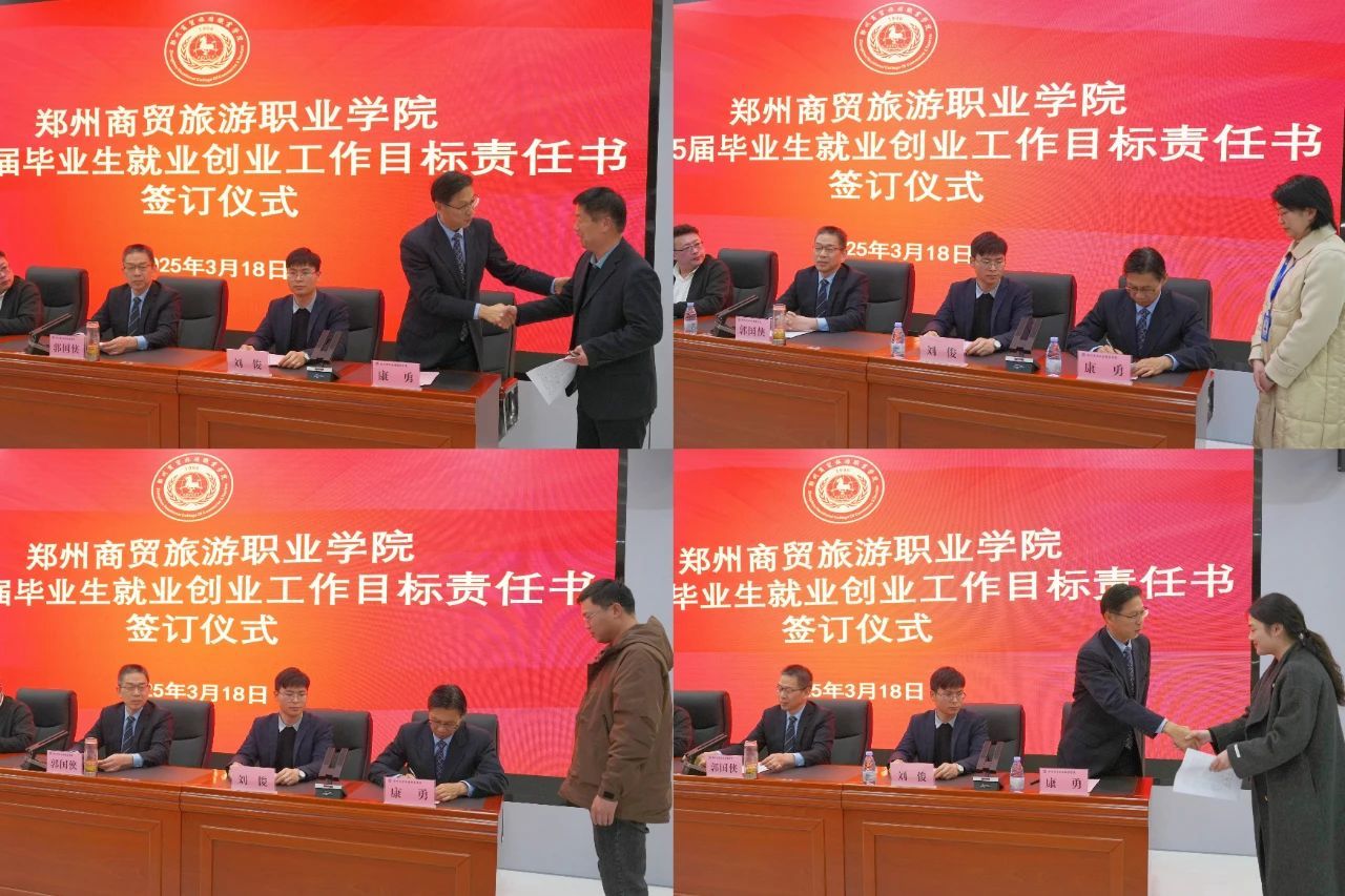 会议举行了就业创业工作目标责任书签订仪式。副校长康勇与各二级学院负责人分别签订责任书,明确就业工作目标任务,层层压实责任链条。