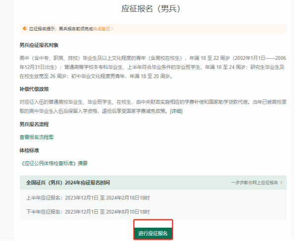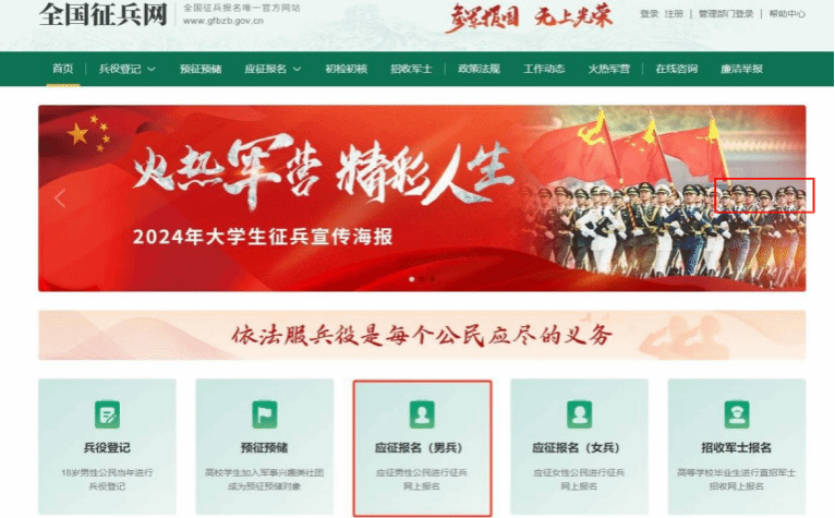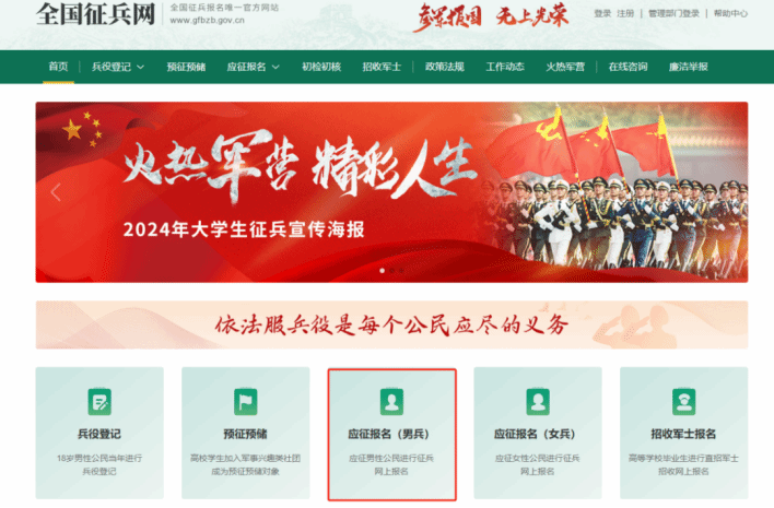 1、在全国征兵网(https://www.gfbzb.gov.cn/)上,点击应征报名(男兵);