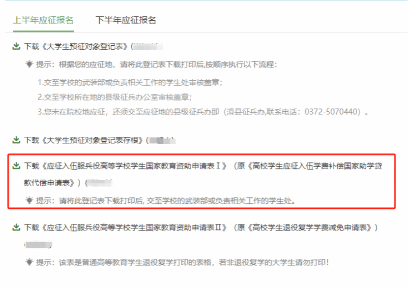 附件:1.《应征入伍服兵役高等学校学生国家教育资助申请表I》填写及下载流程