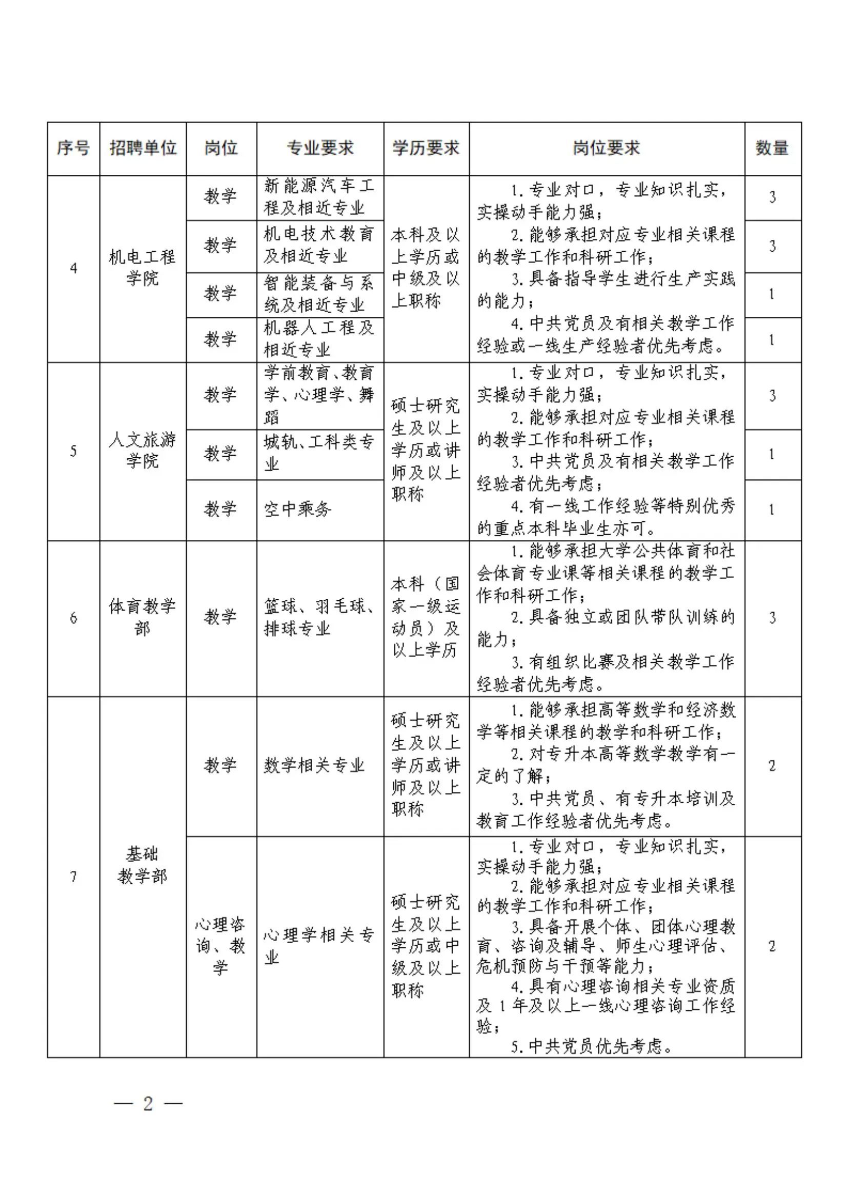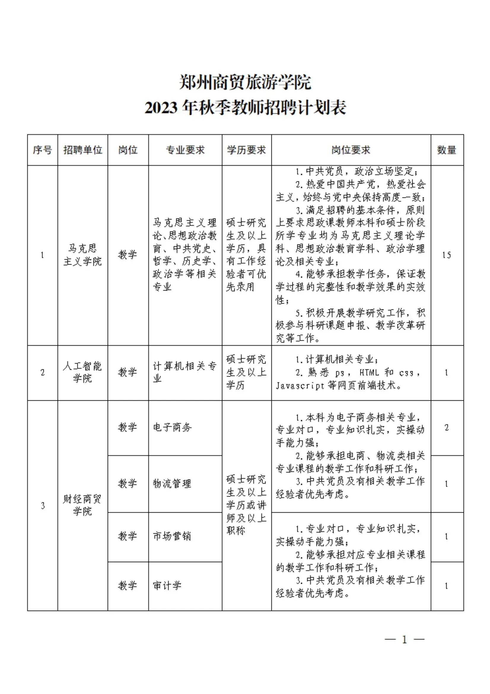 招聘岗位及相关要求详见郑州商贸旅游职业学院2023年秋季人教师公开招聘计划表(详见附件)。