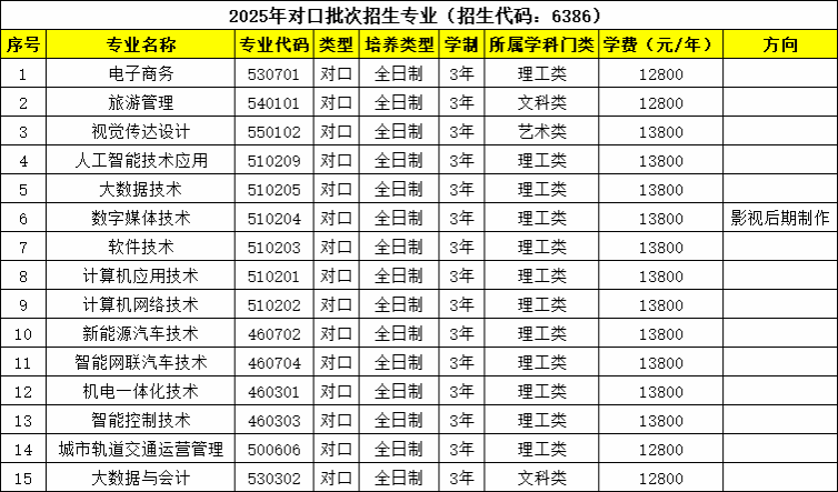 第十七条  专业设置:2025年学校对口招生专业和学费详见附件,住宿费:1500元/生·学年。