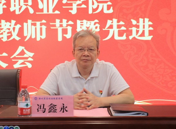 副校长冯鑫永宣读了我校文件《郑州商贸旅游职业学院关于对2023年教师节先进个人进行表彰的决定》。