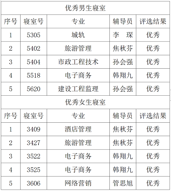 在此次活动中取得优秀文明寝室11个、优秀班级4个,分别是以下: