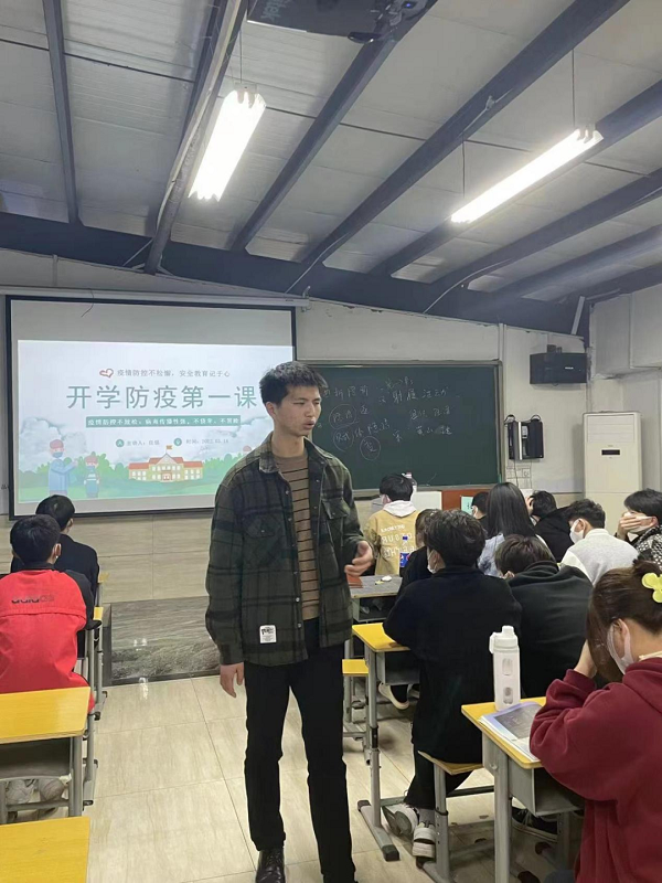 为切实加强校园疫情防控和安全管理,进一步提高学生的疫情防控意识和遵纪守法意识,辅导员闻令而动,积极准备,采用线上线下相结合的方式召开主题班会,向全体同学传达学校当前的疫情防控政策与管理要求,教育引导全体同学牢记疫情防控安全知识,持续做好个人防护,遵守相关法律法规与校规校纪,共同维护安全、稳定、健康的校园环境。