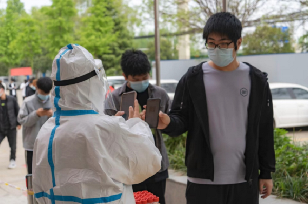 同学们有序扫码登记