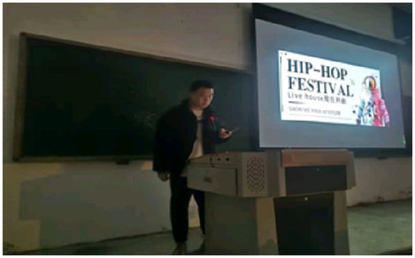 说唱社为了丰富学生们的课余生活,为音乐爱好者们提供交流平台,12月11日下午,说唱社社长及副社长和社员们在402教室积极开展活动,让学生们参与到活动中。说唱作为当代年轻人最流行的音乐形式,深受很多年轻人热爱,说唱社可以让喜欢说唱的同学得到更多的发挥空间,丰富同学们的课余生活,丰富学校的文化艺术形式,同学们可以发挥自己的音乐才能。