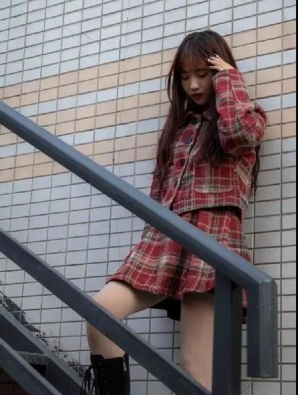 酒红色的制服套装与长靴的结合独特又吸睛,甜酷感与少女感完美相融。学院风满满,冬日里尽显绚丽。