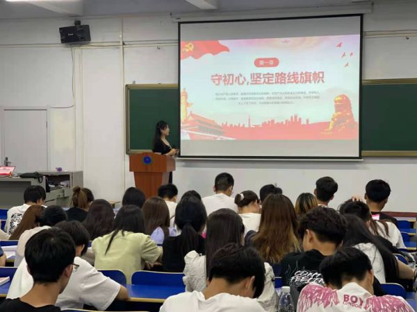 陈莹围绕“同心共筑中国梦,不忘初心跟党走”主题展开宣讲,从“守初心,担使命,找差距,抓落实”四个方面为在座学生上了一节生动精彩的党史课。陈莹指出,我们要在学习党史中坚定理想信念、获得精神鼓舞、升华思想境界,使之转化为我们不断的奋斗力量,在全面建设社会主义现代化国家新征程上披荆斩棘、一往无前。