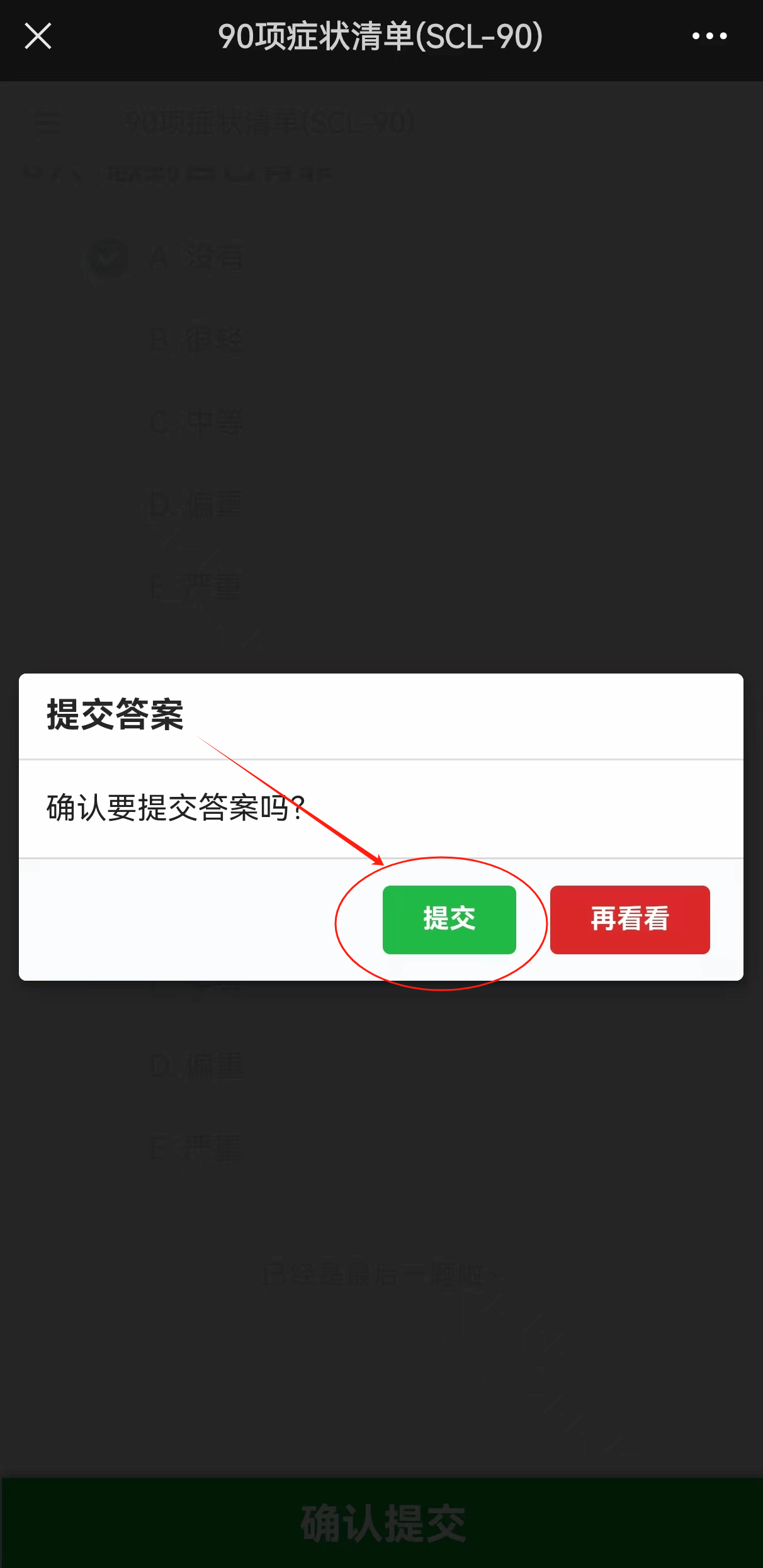 6.测评共有90道题,学生要根据自己自身真实情况作答,90道题全部作答,方可提交。点击“提交”即可。