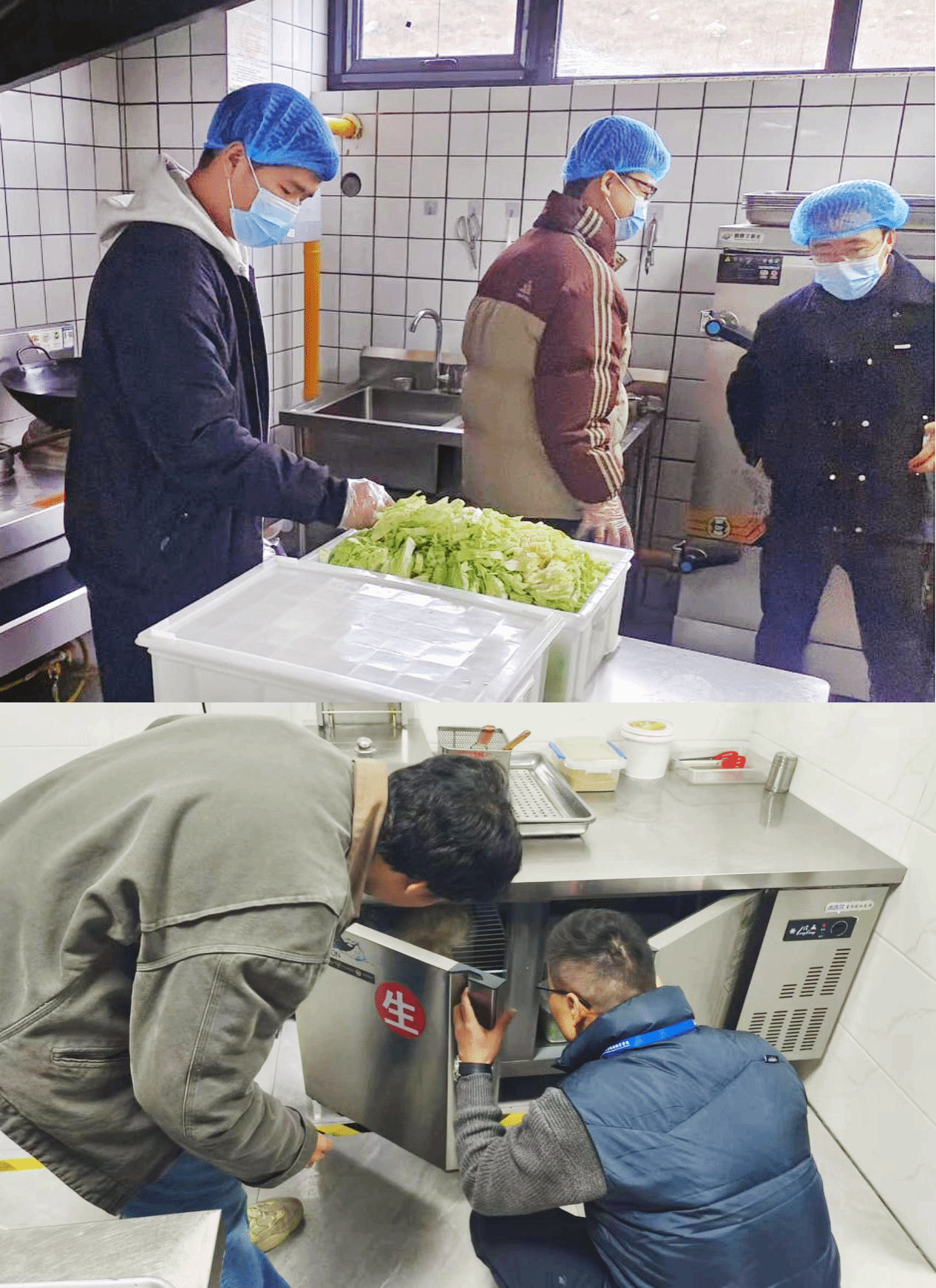 检查人员以食堂的环境卫生、原料控制、设施设备、加工制作、从业人员健康管理、餐饮具清洗消毒、食品留样、食品原材料存放等检查为重点,深入排查食品安全风险隐患。针对灶台、货架下方以及排水沟等卫生死角,现场与餐厅经理深入交流、分析原因,并提出整改意见。在检查过程中,后勤处伙食科工作人员再次重申了食品安全的重要性,强调必须严格把控好每一道关卡,后厨操作间作为食品生产的核心区域,必须始终保持高度的清洁与整洁,严格执行生熟分离的操作规范,防止交叉污染。