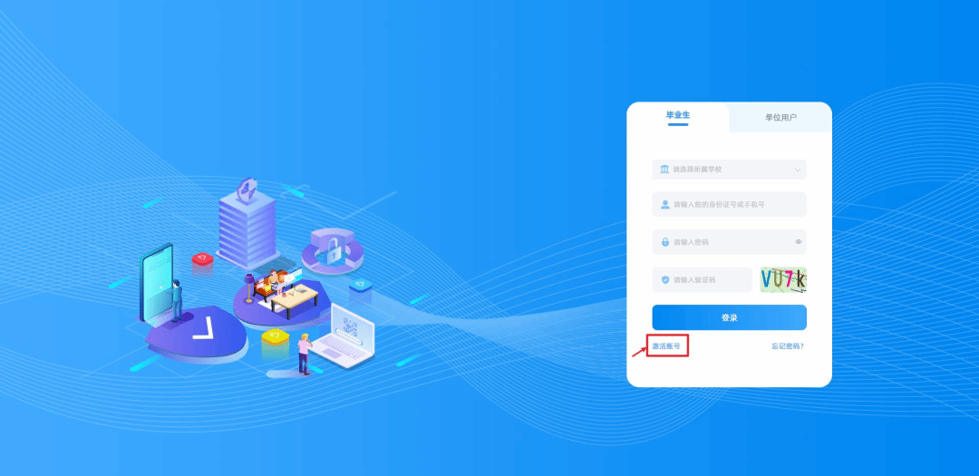 首次进入”登录页面”需要先对账号进行激活,点击”激活账号”进入激活页面