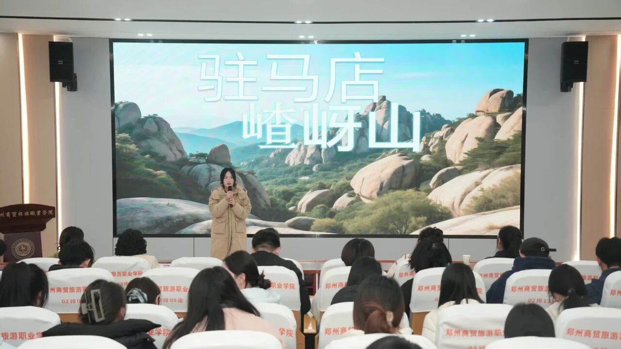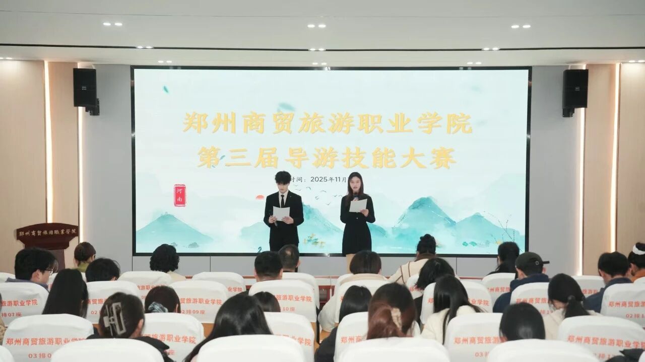 11月27日下午,郑州商贸旅游职业学院第三届导游技能大赛决赛在新密校区公共教学楼举行。本次大赛以“提升学生专业技能”为目标,经过初赛选拔,七名优秀选手脱颖而出,齐聚决赛舞台,展开了一场知识与口才、专业与风采的激烈角逐。河南省旅游协会导游分会常务理事郭亚伟、副校长巴玉强、人文旅游学院副院长郭小汇、专业教师贾晗玉等担任评委,师生代表共同见证了这场充满激情与专业的赛事。