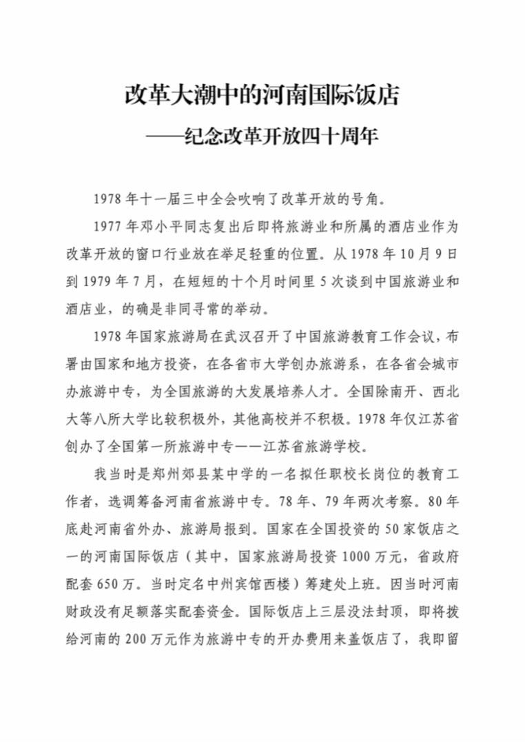 [组图]改革大潮中的河南国际饭店——纪念改革开放四十周年