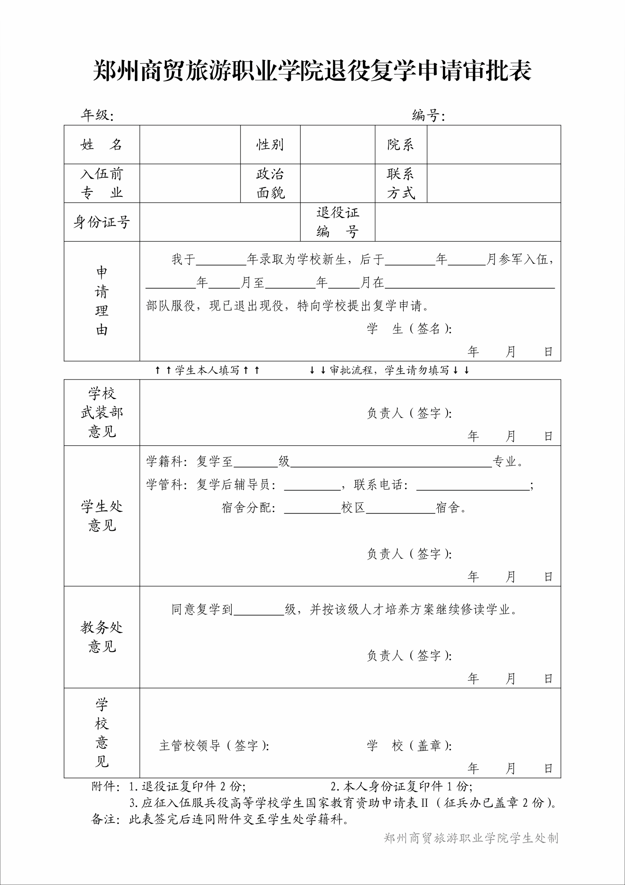 郑州商贸旅游职业学院退役复学申请审批表.pdf