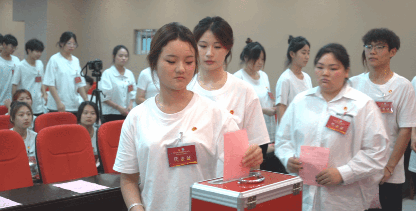 在总监票人和监票人的监督下,大会以无记名投票的方式差额选举产生了郑州商贸旅游职业学院第四届学生会主席团成员。