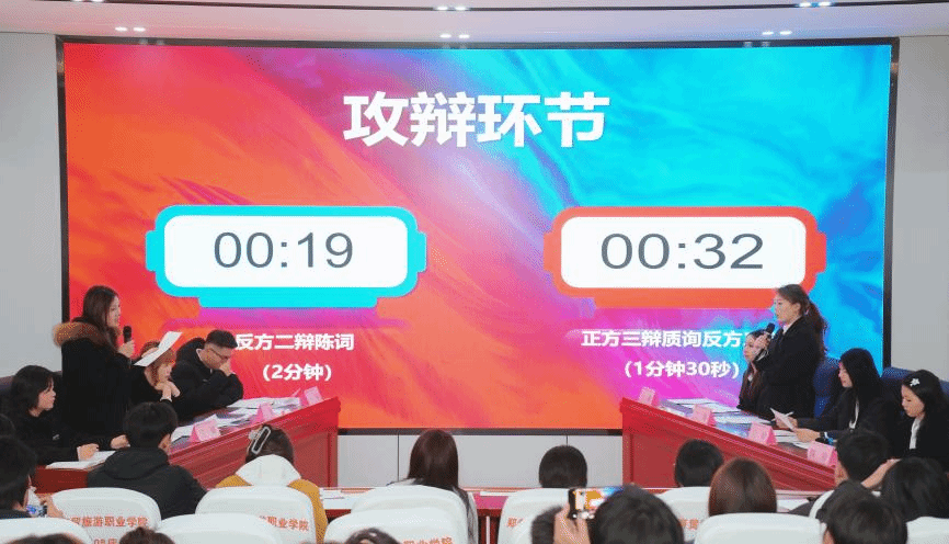 本届辩论赛吸引了来自各二级学院的众多优秀队伍。赛场上,辩手们轮番登场,就“人生路上享受/奋斗更重要”“时代造就青年/青年造就时代”“人工智能会/不会让思考变得简单”三大议题展开多轮交锋。从陈词立论到自由对辩,再到总结陈词,正反双方、言辞交锋,以严密的逻辑思辨和扎实的知识储备,呈现出一场精彩纷呈的思维碰撞盛宴。