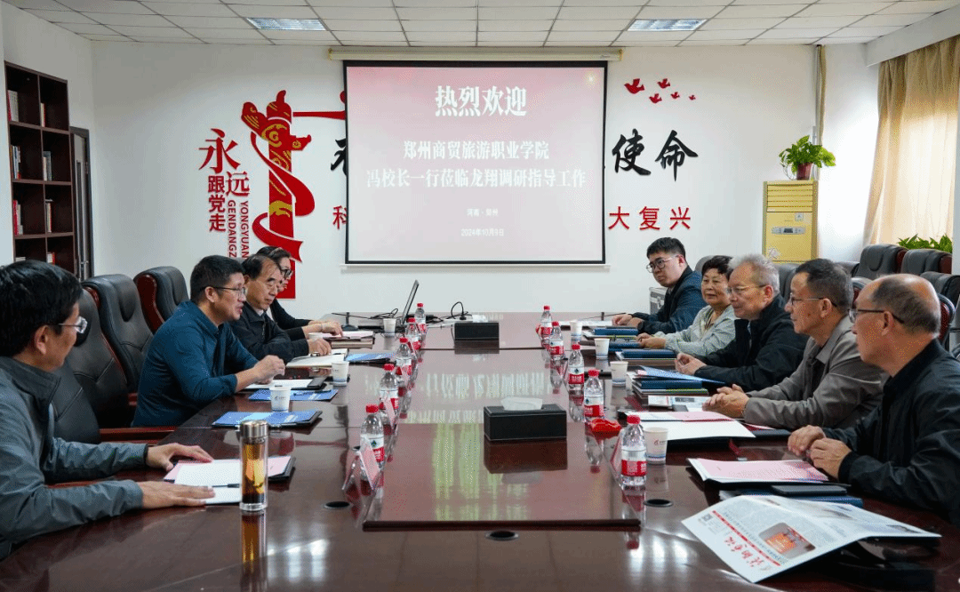 为深化产教融合、探索校企合作新路径,10月9日,副校长冯鑫永带队,副校长王素湘、机电工程学院院长王奎英、校企合作办公室主任李万银一行前往河南龙翔电气股份有限公司实地调研交流。龙翔电气总经理杨红卫、总工程师张新德、龙翔教育董事长孙福源、总经理王璠等人出席了此次调研交流。