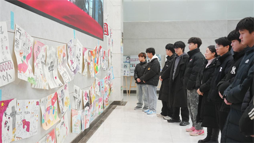 展览汇聚了来自各院系学生的百余幅艺术作品。创作者们以笔墨为载体,或抒发历史场景的沉痛感怀,或勾勒对和平未来的深切期许。一幅幅黑白素描庄重肃穆,承载着对历史的深刻省思;一组组色彩递进的画作意蕴深远,隐喻着中华民族从苦难走向辉煌的奋进征程。展览现场氛围庄严沉静,观众驻足画前凝神谛视,在艺术的浸润与感召中,接受了一场深刻的精神洗礼。